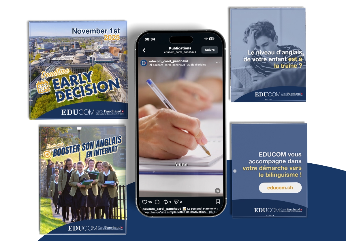 EDUCOM accompagne les familles de Suisse romande et d’ailleurs en proposant une orientation personnalisée – que ce soit pour des séjours linguistiques, des internats, une année de transition ou un coaching universitaire.