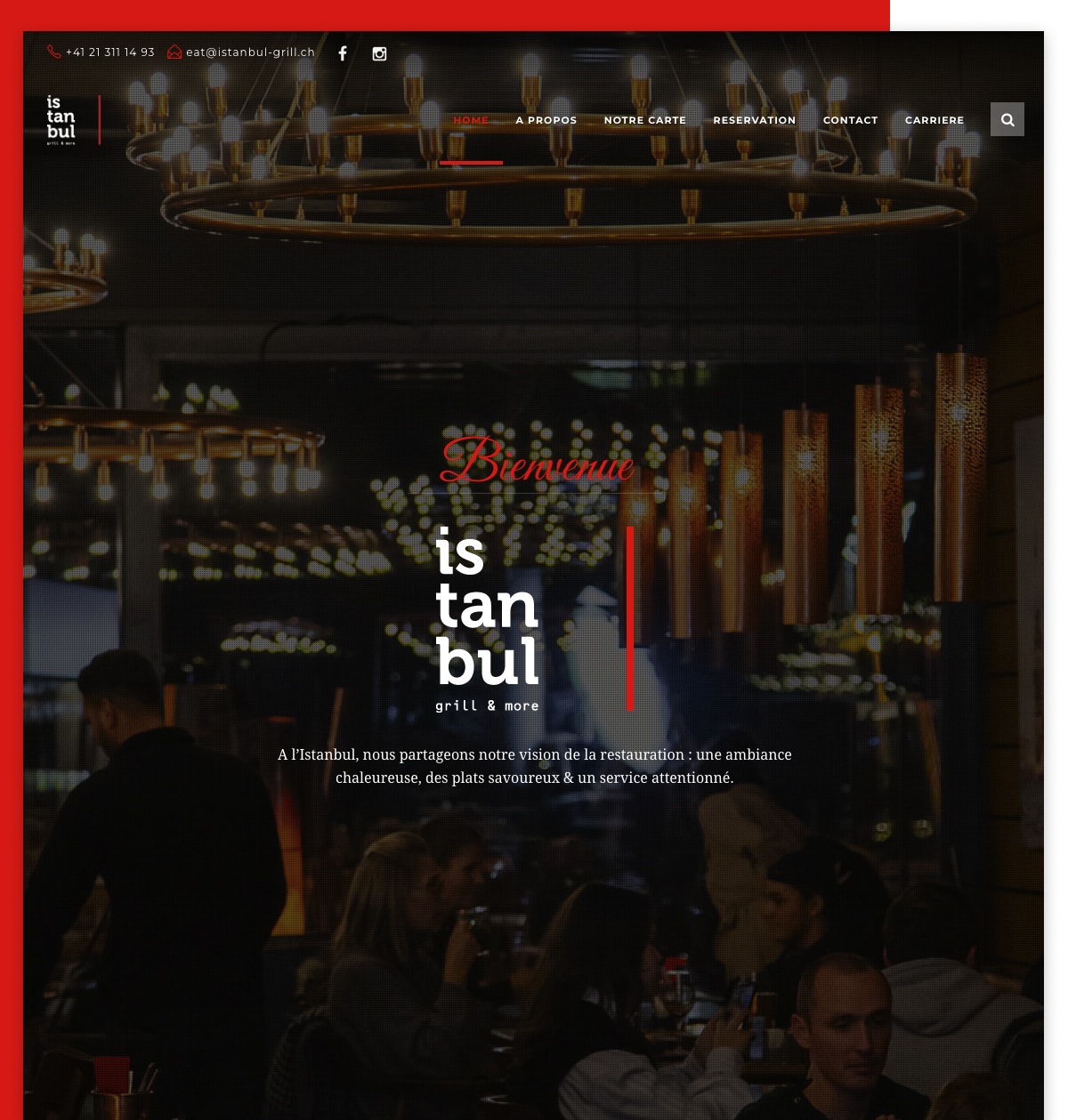 Entre repas en famille, soirées entre amis, cocktails et shisha, Istanbul Grill & Bar se distingue par son atmosphère chaleureuse, son service attentionné et une restauration chaude servie toute la journée.