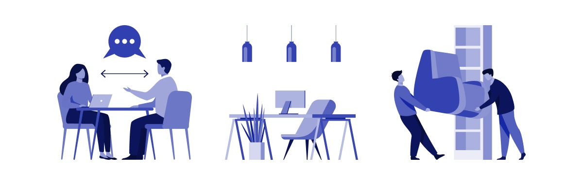 Conception et aménagement d’espaces professionnels avec mobilier durable et fonctionnel.