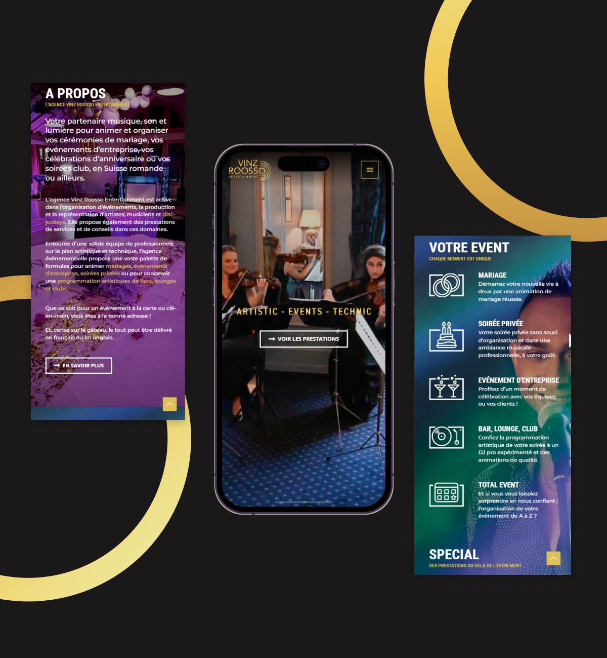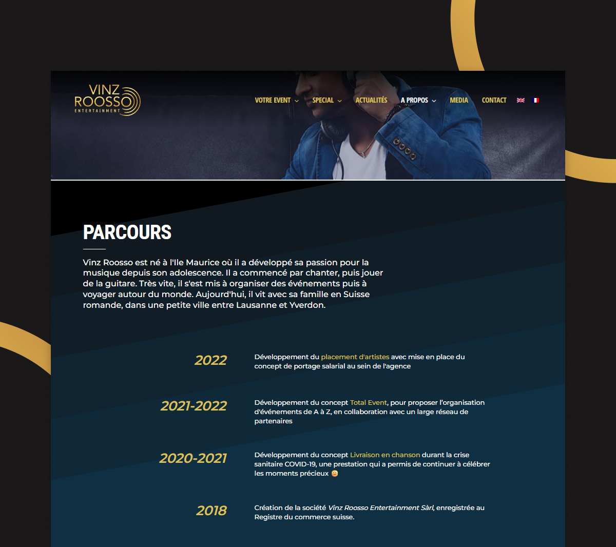 Entourée d’une équipe de professionnels artistiques et techniques, Vinz Roosso Entertainment conçoit des événements à la carte ou clé en main, en français comme en anglais, avec une exigence constante de qualité et d’ambiance.